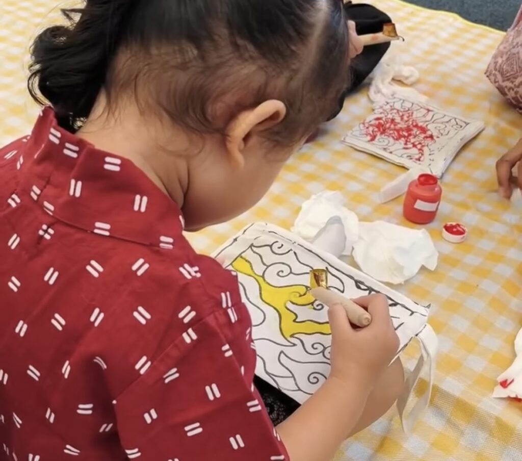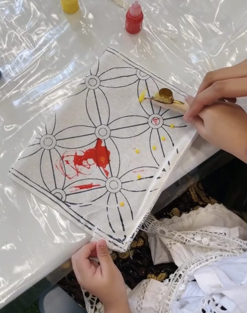 Dressed in beautiful traditional Indonesian attire, students were immersed in the richness of our cultural heritage. They explored the unique stories behind batik motifs, discovering how each pattern reflects the values. With joyful hands and curious minds, they then created their own batik artworks—some painted on fabric, while others crafted designs on pencil cases, blending tradition with creativity.